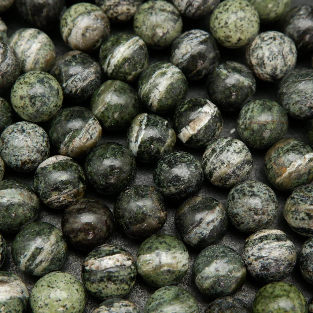 This natural Green Zebra Jasper, also known as Green Serpentine Chrysotile, has not been treated to enhance color or clarity in any way.