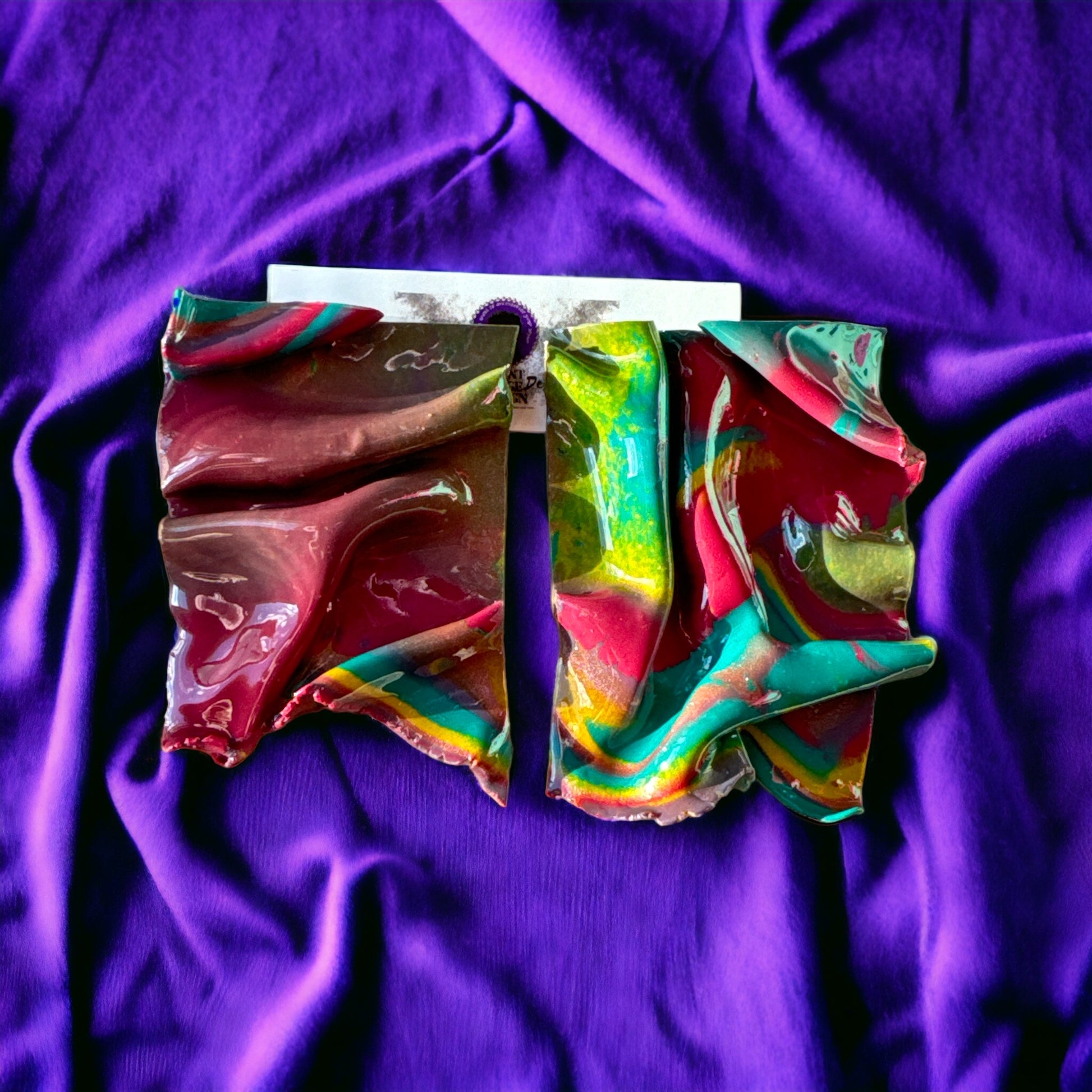 • If your piece is varnished, hand painted, has gold leaf, is glittered--use a baby wipe to gently clean the surface of the earring.